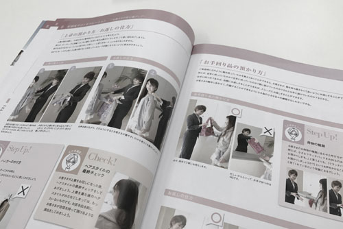 - 作成した資料をもとに、撮影シーンを設定します。それぞれの項目に合わせて撮影のポージングのサポートをします。一つ一つの動作を綺麗におさめることができるので、完成品のクオリティが高くなります。また、撮影に参加したスタッフさんの接客の立居振舞に対する意識向上につながります。